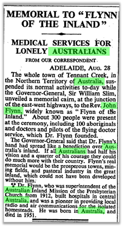 Harold Large summed up John Flynn perfectly in 1933 ‘To link up the scattered settlers in the Australian bush with the rest of the of the continent, and provide for their spiritual, medical and material needs, was a dream which had long haunted the waking thoughts of one John Flynn, who, as “Flynn of the Inland”, is now a legend in the Antipodes.’
