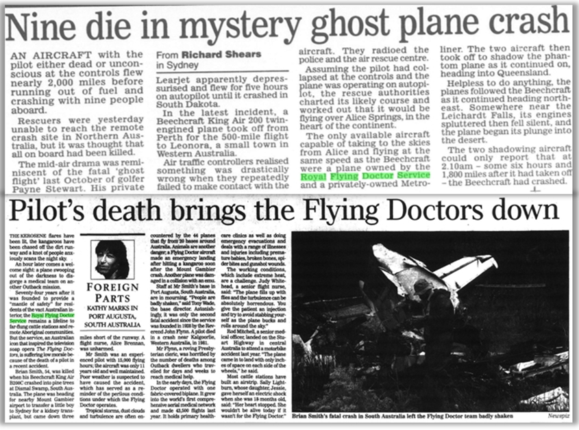 Sadly there are some tragic stories despite the best efforts of the RFDS. In 2000 nine people died in a plane crash after the pilot lost consciousness. The RFDS along with another plane based in Alice Springs took off and shadowed the aircraft but were helpless to intervene.