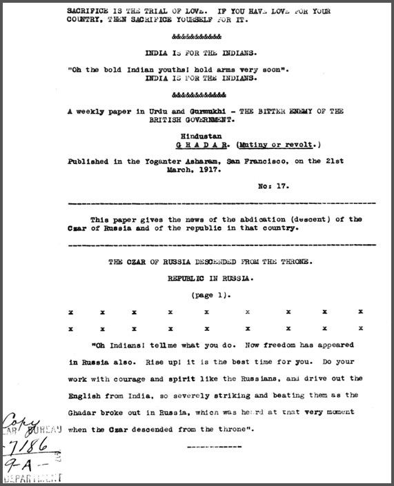 The historical narrative of the Indian National Movement, which often revolves around prominent figures and events, has been studied in spatial terms concerning the Indian subcontinent and Great Britain. However, one important chapter of this transnational history, which unfolded on American soil during the First World War, has often been overlooked due to the paucity of primary sources.