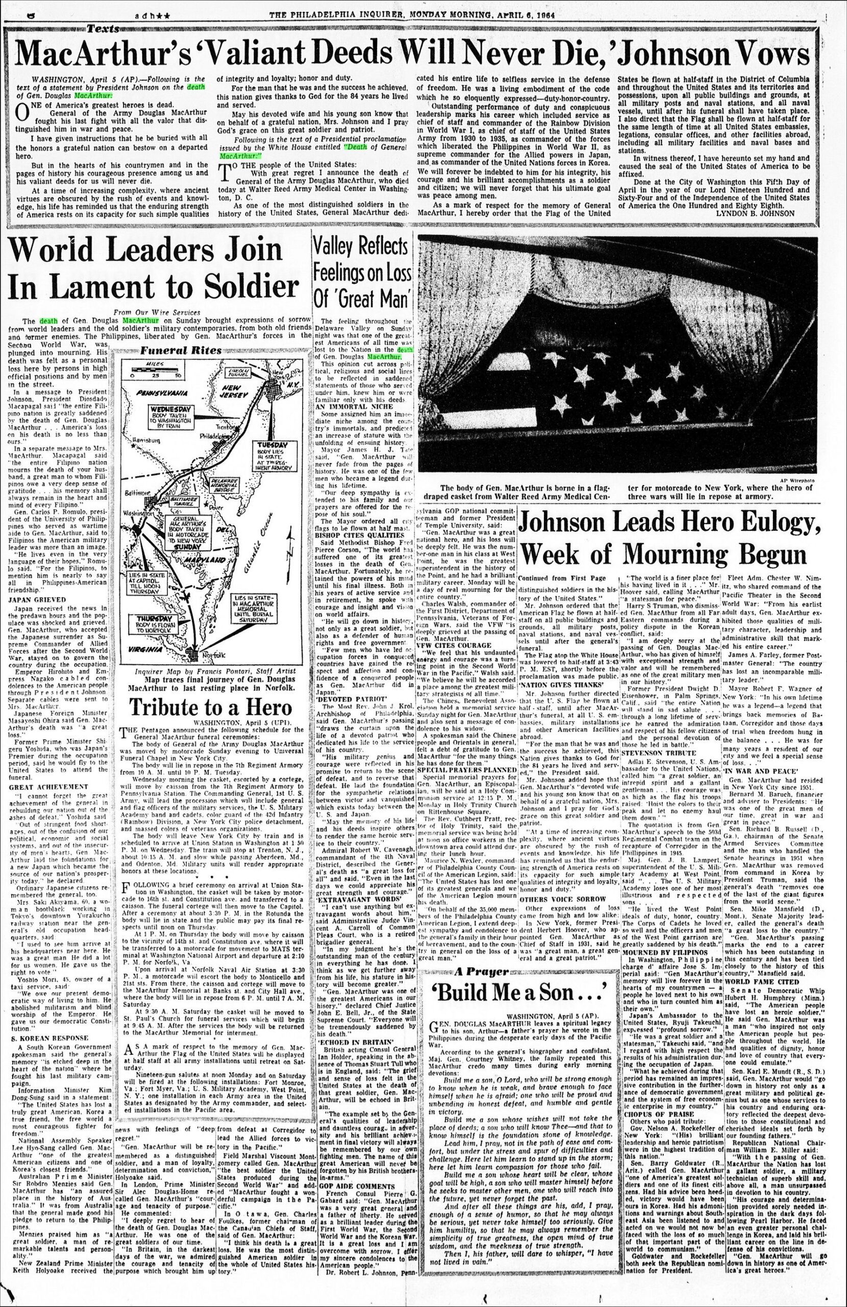 Douglas MacArthur died on April 5, 1964, at Walter Reed Army Hospital. After lying in state in New York and Washington, he was buried in the MacArthur Memorial in Norfolk, Virginia.
