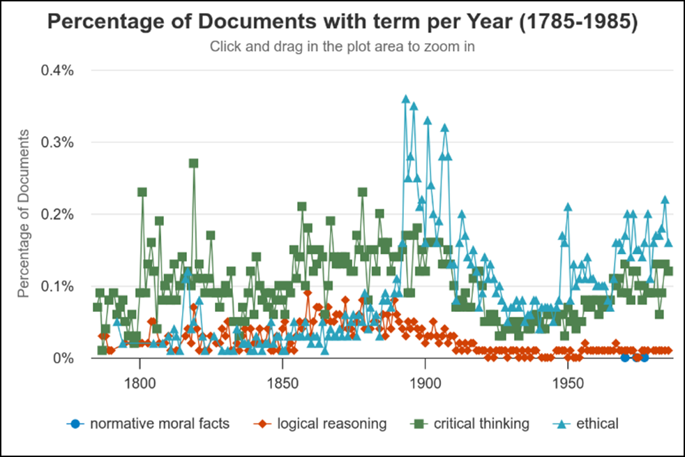 Term frequencies in Times Digital Archive (Percentage), 1785-1985